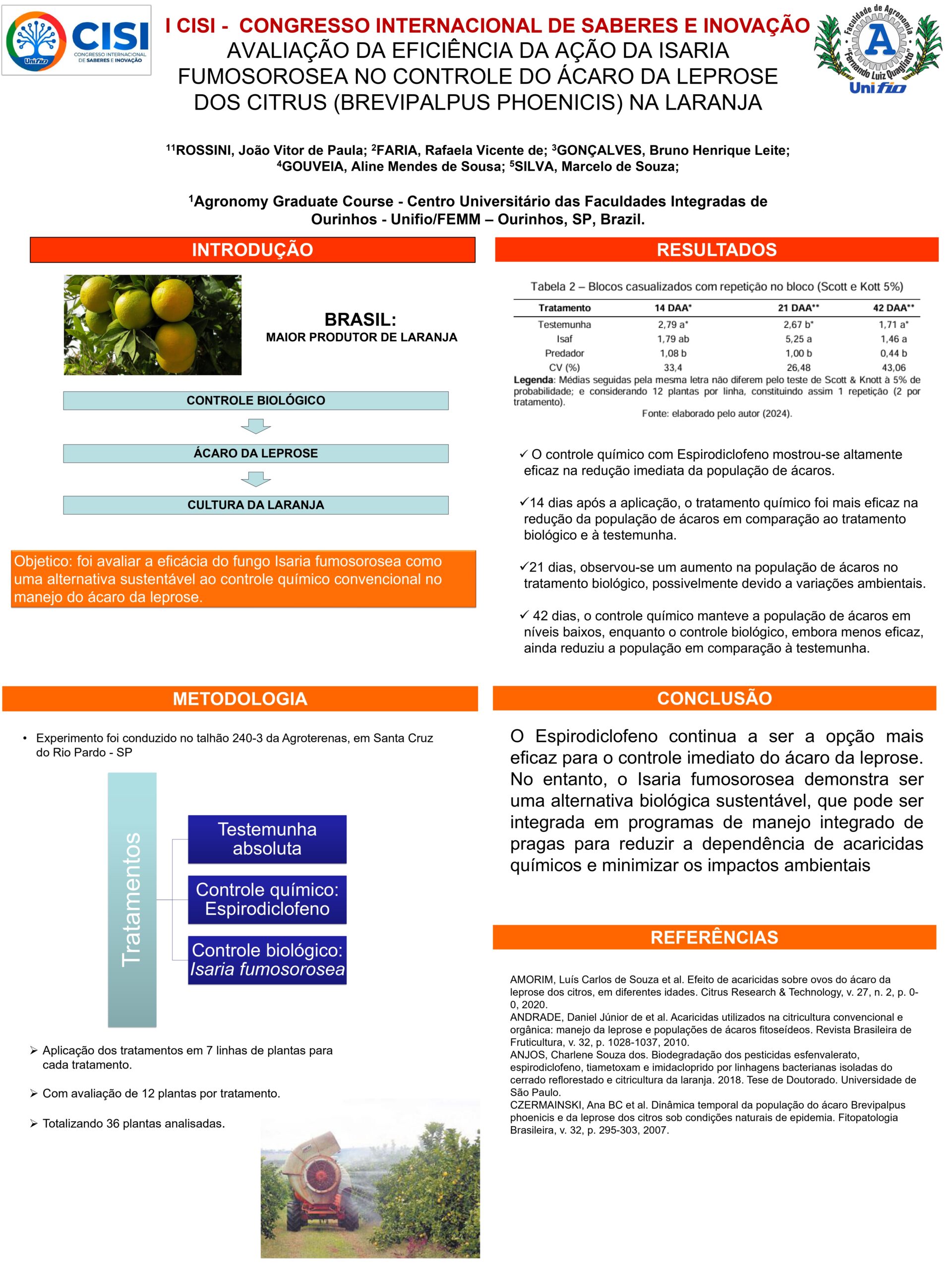 AVALIAÇÃO DA EFICIÊNCIA DA AÇÃO DA ISARIA FUMOSOROSEA NO CONTROLE DO ÁCARO DA LEPROSE