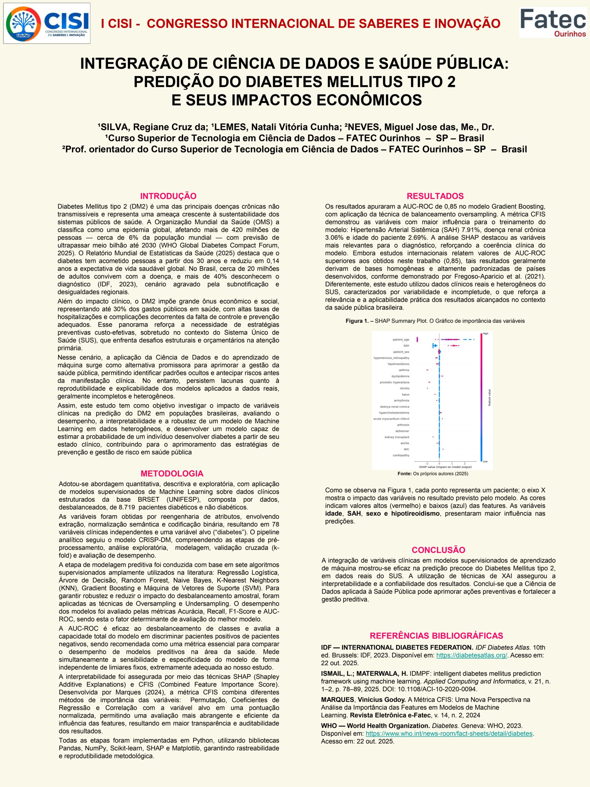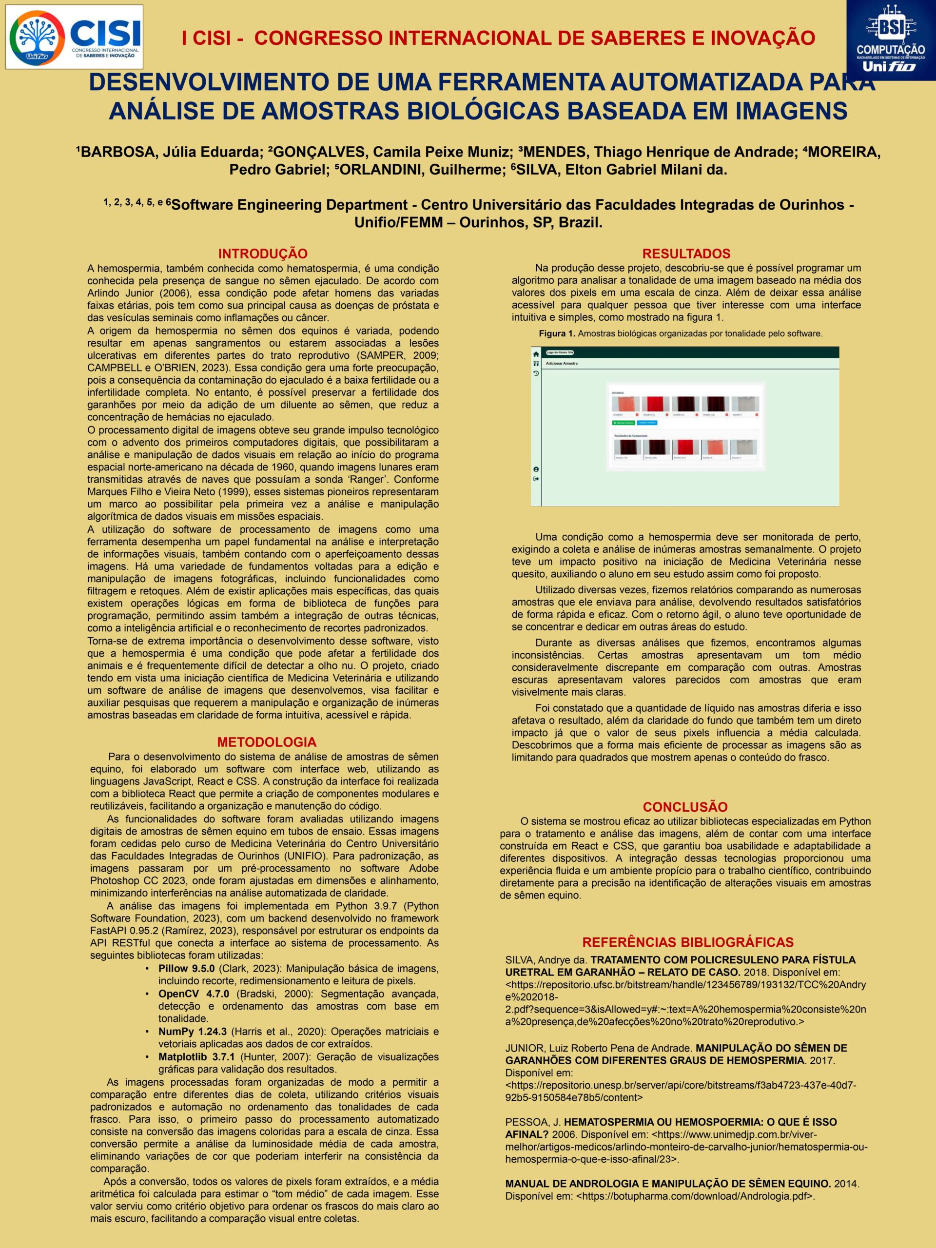 Ciências Exatas e Tecnológicas AUTOMAÇÃODO SISTEMA BRAILLE: DESENVOLVENDO UM DISPLAY PARA A TRADUÇÃO DE CARATERES Autor: André Giovanni Castaldin LINK BANNER UMA ABORDAGEM HÍBRIDA BASEADA NO MÉTODO SHIFTED PRIMAL-DUAL BARREIRA-PENALIDADE PARA RESOLUÇÃO DE PROBLEMAS DE OTIMIZAÇÃO Autor: ANDRICK RODRIGUES ALVES DE SOUZA LINK BANNER AGRUPAMENTO HIERÁRQUICO BASEADO EM COR PARA AGRUPAMENTO DE IMAGENS Autor: Anna Júlia Cardoso Aló LINK BANNER IMPACTS OF DISTRIBUTED PHOTOVOLTAIC GENERATION INTEGRATION ON BRAZILIAN ELECTRICITY DISTRIBUTION NETWORKS Autor: GABRIEL HENRIQUE SALOMÃO DOMINGO LINK BANNER PROTEÇÃO DE CRIANÇAS E ADOLESCENTES NO ESPAÇO ONLINE: UM ESTUDO SOBRE A DETECÇÃO DE CONTEÚDO ABUSIVO Autor: Ana Clara Gazola Cruz Gobetti LINK BANNER DESENVOLVIMENTO DE UMA FERRAMENTA AUTOMATIZADA PARA ANÁLISE DE AMOSTRAS BIOLÓGICAS BASEADA EM IMAGENS Autor: Guilherme Orlandini LINK BANNER TECHNOLOGIES OF CIRCUIT BREAKER FINDER Autor: Igor de Oliveira LINK BANNER DESENVOLVIMENTO DE UMA ESTRUTURA DE CARPORT COM INTEGRAÇÃO DE SISTEMA FOTOVOLTAICO Autor: JOÃO VICTOR PAES DE ALMEIDA LINK BANNER PROPOSAL AND REVIEW OF BASINET -PY: A PYTHON IMPLEMENTATION FOR THE CLASSIFICATION OF BIOLOGICAL SEQUENCES USING COMPLEX NETWORKS AND MACHINE LEARNING Autor: Kelven Beranha Nascimento LINK BANNER INOVANDO A COMUNIDADE MUSICAL: UM SISTEMA DE REDE SOCIAL E PORTFÓLIO PARA MÚSICOS Autor: Matheus Maqueda Martins LINK BANNER INTEGRAÇÃO DE CIÊNCIA DE DADOS E SAÚDE PÚBLICA: PREDIÇÃO DO DIABETES MELLITUS TIPO 2 E SEUS IMPACTOS ECONÔMICOS Autor: Regiane Cruz da Silva LINK BANNER SOFTWARE DE TRADUÇÃO E LEGENDAGEM DE ÁUDIO SIMULTÂNEO Autor: SILVIO JALES ROSA JUNIOR LINK BANNER PREVENDO RISCO DE DOENÇAS CARDÍACAS COM MACHINE LEARNING Autor: Tiago Bueno Santos LINK BANNER SISTEMA WEB PARA GESTÃO DE EMERGÊNCIAS NO AMBIENTE UNIVERSITÁRIO Autor: Victor Hugo de Souza SantAnna Tamiao LINK BANNER ANÁLISE E CARACTERÍSTICAS DOS MOTORES BRUSHLESS (BLDC) Autor: Vinicius Pires Evangelista LINK BANNER